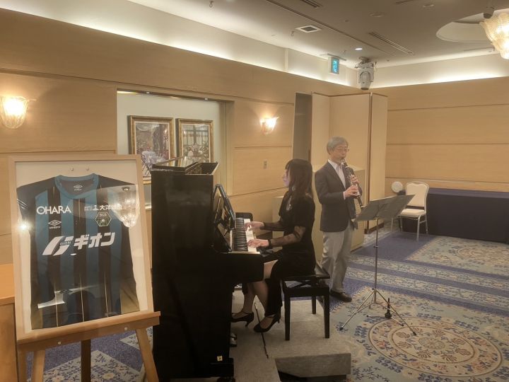 当日は約90名の参加にて開催し、歓談中には毛利友理香さんによるピアノ演奏、中山洋さんによるクラリネット演奏や