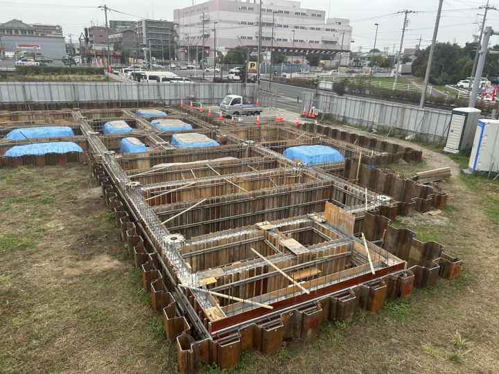 基礎工事が完了し、鉄骨建て方工事に向かいます。