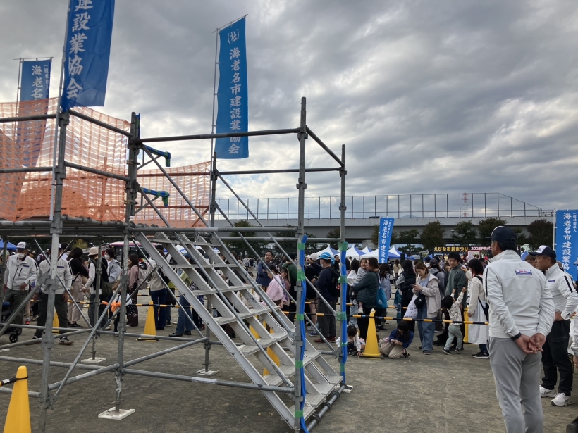 海老名市建設業協会が行った高所作業車の体験イベントには多くのお子様と親御様がお越しくださいました。